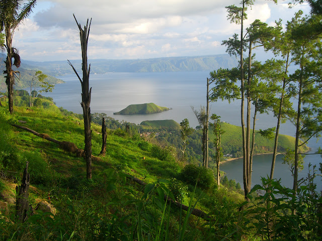 Peltojen siimeksestä avautui upea näkymä Toba-järvelle, joka muodostui 75 000 vuotta sitten tulivuoren räjähdyksessä ja on Kaakkois-Aasian suurin järvi. Vulkaaninen räjähdys on suurin maailmassa 25 miljoonaan vuoteen. Pyöräily jyrkkien rannikkovuorten rinteillä hipoi täydellisyyttä. Oikealla puolella vuoret syöksyivät jyrkästi kohti järven pintaa ja kapea ruuantuotantoon kelpaavan maakaistale oli muokattu monenlaisiksi viljelmiksi. Tien vasemmalla puolella koti-ikävääni helpottivat perisuomalaisilta näyttäneet mäntymetsät. Kaiken kruunasi täydellisen mutkikkaat, hyväpintaiset ja liikenteeltä vapaat alamäet, joiden mutkissa tehtailin uusia nopeusennätyksiä. Alamäkien adrenaliinihuumassa kaikkosi myös väsymys ja vauhdinhurmassa ehdin Toballe ennen pimeää. Sirryin lautalla järven keskelle olevalle Samosir-saarelle. Parin kuukauden takaiset Balin pommi-iskut kaukana toisella puolella Indonesiaa olivat tyhjentäneet jylhän saaren idylliset rantabungalowit turisteista ja olin ainoa, jolle saaren kauniit tytöt saattoivat hymyillä ja ainoa kellä oli nautinto kuunnella kitaramiesten rauhallista soittoa autottomassa ja sähköttömässä hiljaisuudessa.